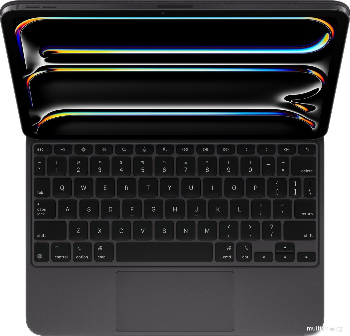| Информация | ??Текст описания переведен при помощи искусственного интеллекта. - Magic Keyboard for iPad Pro предлагает удивительный опыт набора текста и трекпада в элегантном, портативном новом дизайне с подставкой из алюминия. Клавиатура включает 14-клавишную функциональную строку для быстрого доступа к яркости экрана, управлению громкостью и другим функциям, а также разъем USB-C для зарядки. Плавающий кантилеврный дизайн плавно регулируется под различные углы обзора. - Новый, более крупный трекпад с тактильной обратной связью идеально подходит для точных задач, таких как редактирование электронных таблиц и выбор текста, или просто навигации по iPad с помощью интуитивных и знакомых жестов Multi-Touch. А прочный внешний чехол обеспечивает защиту спереди и сзади, идеально подходит для использования iPad Pro везде. - Тонкий и портативный кантилеврный дизайн обеспечивает плавную регулируемость и обеспечивает идеальный угол обзора. - Встроенный более крупный стеклянный трекпад с тактильной обратной связью. - 14-клавишная функциональная строка для быстрого доступа к яркости экрана, управлению громкостью и другим функциям. - Удобные подсвеченные клавиши и механизм с зажимом с ходом 1 мм для тихой, отзывчивой печати. - Разработан для жестов Multi-Touch и курсора в iPadOS. - Прочный алюминиевый шарнир включает разъем USB-C. - Складывается в чехол, обеспечивая защиту спереди и сзади при путешествии с iPad Pro. - Требования к системе iPad Pro 11-дюймовый (M4) с установленной iPadOS 17.4 или более поздней версией. |