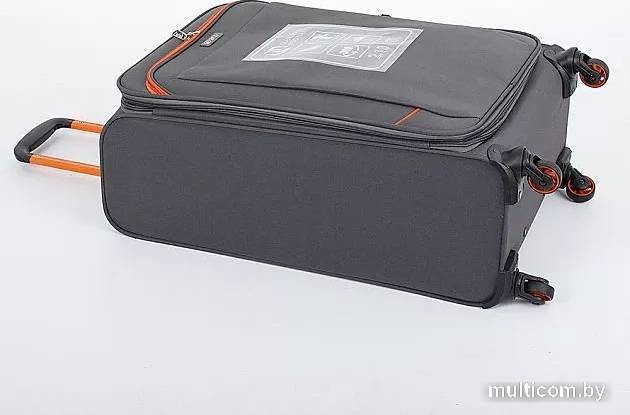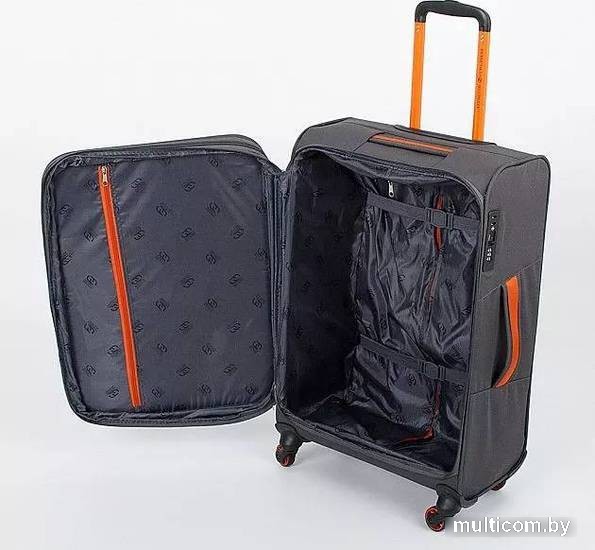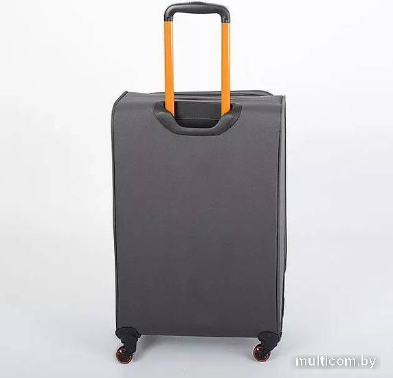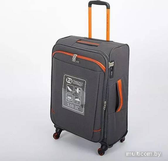 | Информация | Супер лёгкий чемодан-спиннер, всего 2,1 кг. при 24 дюймах, от бренда Francesco Molinary. Выполнен из плотного текстиля серого цвета с оранжевыми вставками. Модель имеет четыре колеса с поворотом на 360 градусов и выдвижную телескопическую ручку оранжевого цвета. Чемодан оснащён кодовым замком, двумя эргономичными ручками для переноса и молнией для увеличения объёма. Спереди накладной карман на молнии. Под крышкой основного отделения прорезной карман на молнии, основная часть фиксируется двумя эластичными ремнями. |