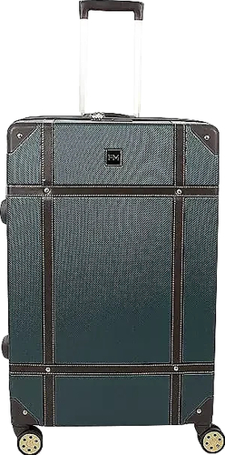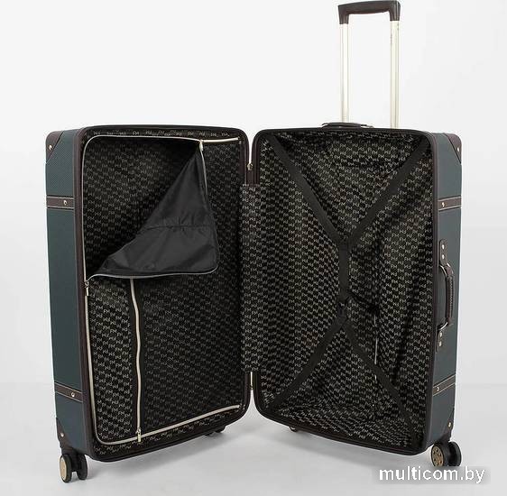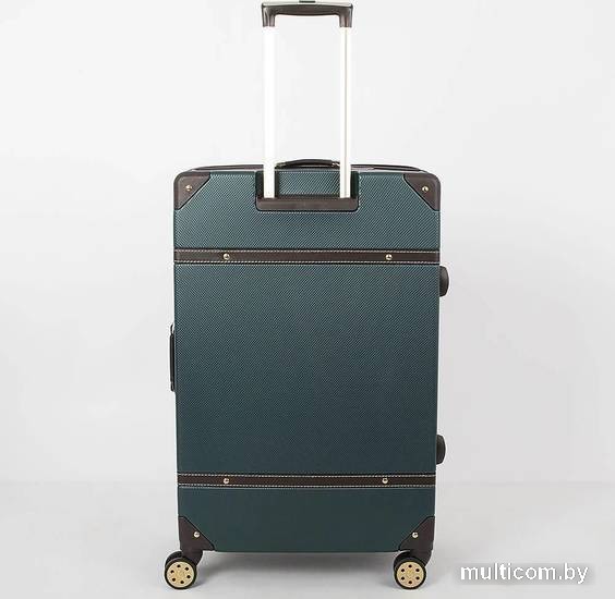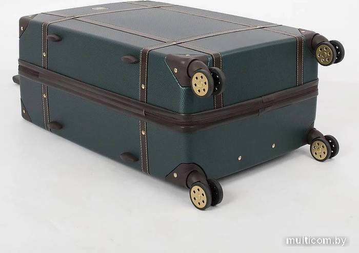 | Информация | Чемодан-спиннер от торговой марки Francesco Molinary выполнен из ударопрочного термопластика ABS с антивандальной поверхностью изумрудно-зеленого цвета. Модель на четырех сдвоенных пластиковых колесах, оснащена выдвижной металлической ручкой с кнопкой, ручками из искусственной кожи сверху и сбоку, пластиковыми ножками сбоку, утопленным в корпус кодовым замком TSA. Закрывается двойной антивандальной молнией. Внутри: фирменная подкладка, в одной части – клапан на молнии с внешним карманом-сеткой на молнии, в другой – перекрестные ремни для фиксации багажа. Углы чемодана укреплены пластиковыми накладками. Модель декорирована фурнитурой золотистого цвета, вставками из искусственной кожи коричневого цвета и клепками. |
