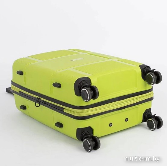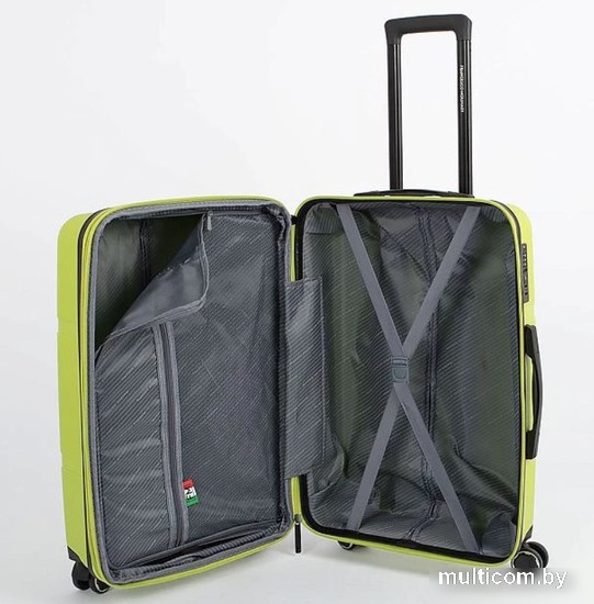 | Информация | Чемодан-спиннер от торговой марки Francesco Molinary из ударопрочного термостойкого полипропилена с антивандальной узорной поверхностью разной фактуры в салатовом цвете. Модель на четырех сдвоенных пластиковых колесах, с выдвижной ручкой с железными трубками, ручками-переносками сверху и снизу, пластиковыми ножками-опорами сбоку. Закрывается двойной антивандальной молнией; имеется кодовый замок TSA, встроенный в корпус. Внутри: фирменная подкладка плотностью 210 Ден; в одной части – перекрестные ремни для фиксации багажа, в другой – клапан-разделитель на молнии. Имеется раздвижка на молнии для увеличения объема. |