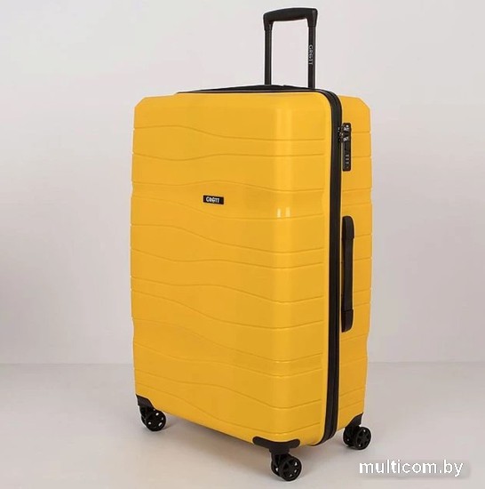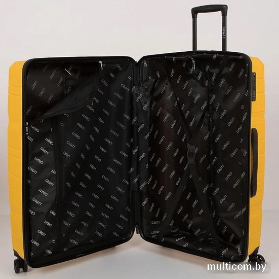 Информация | Чемодан-спиннер из ударопрочного полипропилена с рельефной поверхностью в красном цвете. Модель на четырех сдвоенных колесах, с выдвижной ручкой с металлическими трубками, ручкой-переноской сверху. Закрывается молнией с двумя встречными бегунками с отверстиями для навесного кодового замка, не входящего в комплект. Имеется кодовый замок, утопленный в корпус. Внутри: фирменная подкладка плотностью 210 Ден. |
