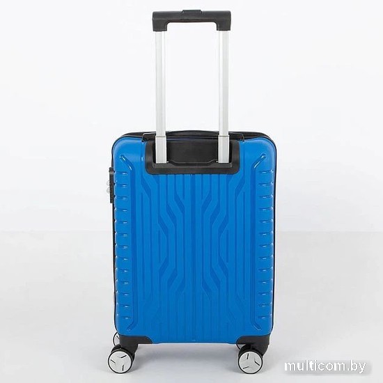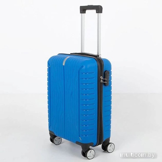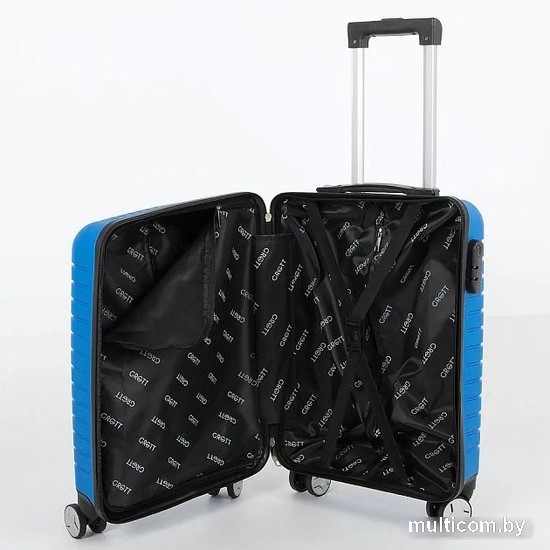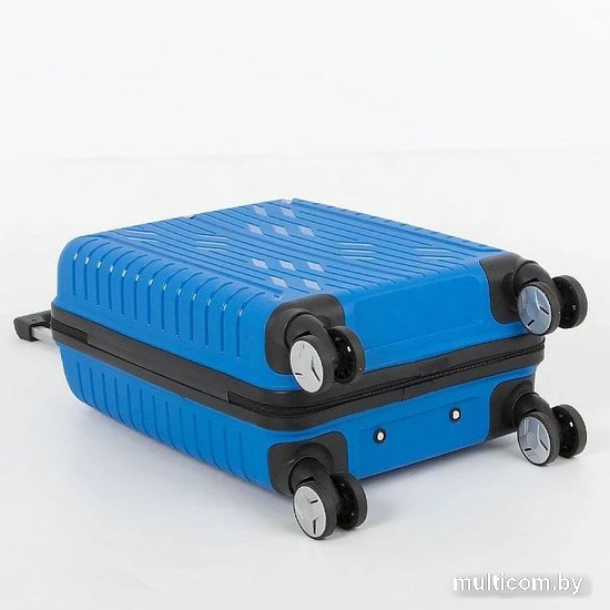 Информация | Маневренный чемодан-спиннер от торговой марки Grott из ударопрочного термостойкого полипропилена с рельефной поверхностью в синем цвете. Модель на четырех сдвоенных колесах, с выдвижной ручкой с железными трубками, ручкой-переноской сверху. Закрывается молнией с двумя встречными бегунками; имеется кодовый замок. Внутри: фирменная подкладка плотностью 210 Ден. В одной части – клапан-разделитель на молнии, в другой – перекрестные ремни для фиксации багажа. Чемодан подходит под размер ручной клади. |