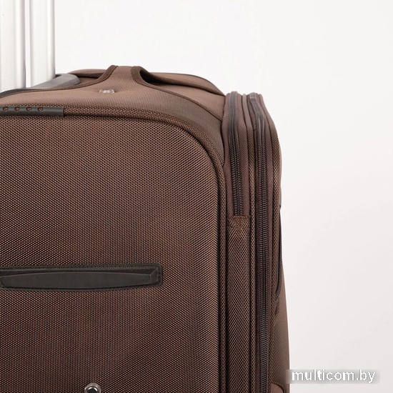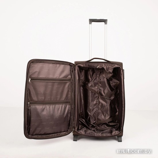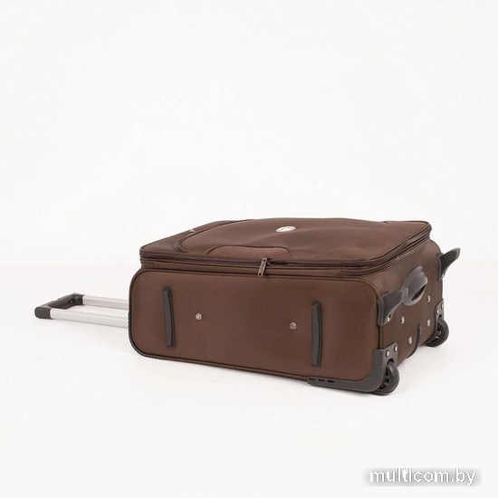 Информация | Чемодан от торговой марки Grott из прочной практичной ткани 1680Д Оксфорд коричневого цвета. Модель на двух широких пластиковых колесах для надежности утопленных в корпус, с выдвижной ручкой с кнопкой и металлическими трубками, ручками-переносками сверху и сбоку, ножками и держателем на дне, ножками-опорами сбоку. Закрывается двойной антивандальной молнией с двумя встречными бегунками; имеется накладной кодовый замок и раздвижка на молнии для увеличения объема. Внутри: фирменная подкладка, в глубоком отделении – фиксирующие ремни, на крышке – два кармана на молнии, в том числе карман-сетка. На лицевой стороне – карман на молнии, декоративные вставки из искусственной кожи; углы укреплены прорезиненной вставкой. На спинке – адресная бирка. |