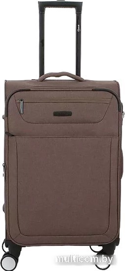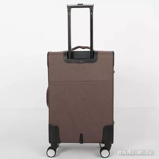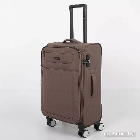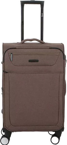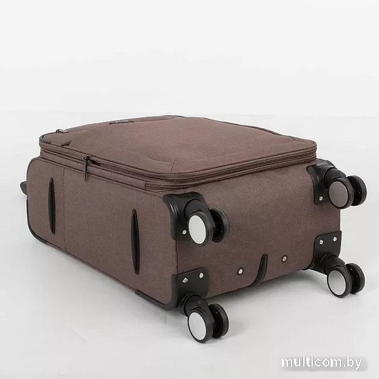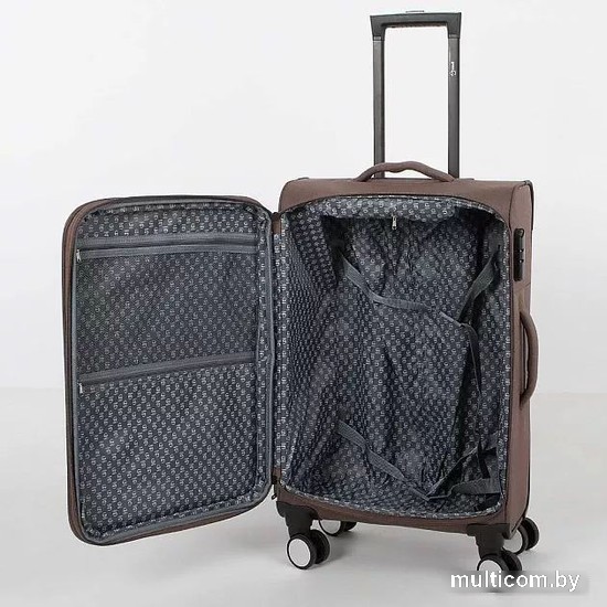 Информация | Чемодан-спиннер от торговой марки Grott из практичной текстильной ткани катионик плотностью 300 Ден в меланжевом коричневвом цвете. Модель на четырех сдвоенных пластиковых колесах, с выдвижной ручкой с кнопкой, ручками-переносками сверху и сбоку, сбоку – плоские пластиковые ножки. Углы укреплены прорезиненными накладками. Закрывается молнией; имеется кодовый замок и раздвижка на молнии для увеличения объема. Внутри: фирменная подкладка плотностью 200 Ден» в глубоком отделении – перекрестные ремни для фиксации багажа, на крышке – два кармана на молнии, в том числе карман-сетка. На лицевой стороне – два кармана на молнии. |