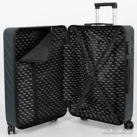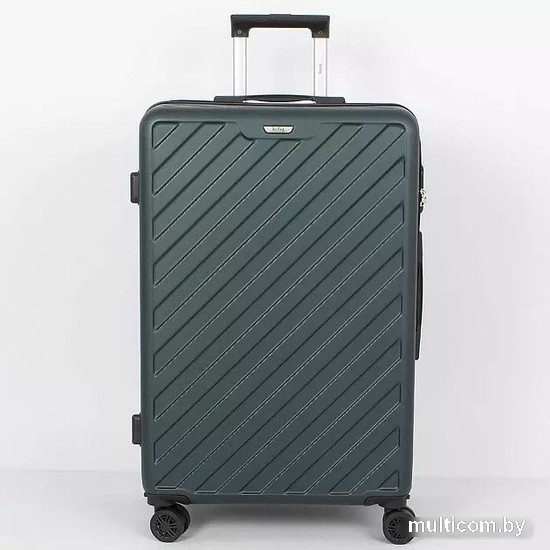 Информация | ? Чемодан-спиннер Mr.Bag 338-9101/5-26DGN из ударопрочного ABS-пластика ? Рельефная узорная антивандальная поверхность с диагональными полосами в темно-зеленом цвете ? Четыре съемных пластиковых колеса ? Выдвижная ручка с железными трубками ? Ручки-переноски сверху и сбоку ? Пластиковые ножки-опоры ?? Закрывается молнией с двумя встречными бегунками ? Отверстие для навесного замка (не входит в комплект) ? Кодовый замок ? Уплотненная текстильная подкладка внутри ? Клапан-разделитель на молнии и карман-сетка ? Перекрестные ремни для фиксации багажа |