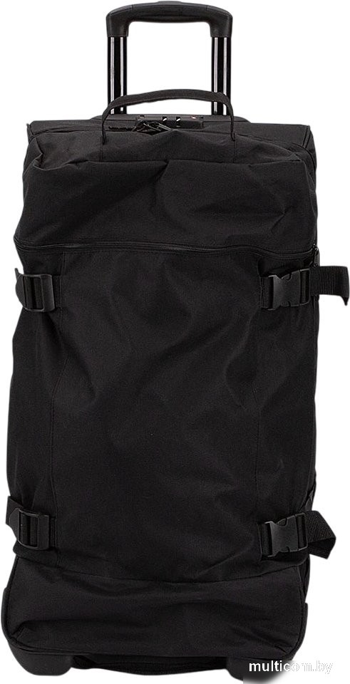 Информация | Баул из практичного плотного материала черного цвета. Модель на двух колесах, утопленных в корпус, с выдвижной ручкой, ручками-переносками, пластиковыми ножками-опорами на дне в двух положениях, фиксирующими ремнями по бокам. Закрывается молнией с двумя встречными бегунками, имеется накладной кодовый замок. Внутри: фирменная подкладка. |