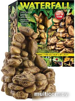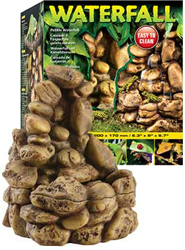 | Информация | Exo-Terra Waterfall – серия декоративных водопадов для тропических террариумов. Представлена тремя моделями различной величины. В комплект поставки водопада входит помпа Exo-Terra Repti Flo. Водопад выполнен в форме скалы, по которой каскадом струится вода Он прекрасно впишется в тропические декорации и дополнит оформление террариума. Кроме того, некоторые ящерицы – к примеру, хамелеоны – в природе не пьют стоячую воду. Необходимую влагу они получают, слизывая капли дождя или росы с растений. Поэтому в неволе их трудно приучить к поилке. Струи воды в водопаде выглядят для них более привлекательно, и они с удовольствием пьют из него. |