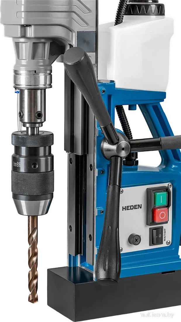 | Комплект поставки | - Магнитный сверлильный станок Heden DM-50K. - Рукоятка подачи, 3 шт. - Страховочный ремень. - Система охлаждения в сборе. - Предохранитель, 2 шт. - Ключи шестигранные S=2, 5, 6. - Пластиковый кейс. - Руководство по эксплуатации. |