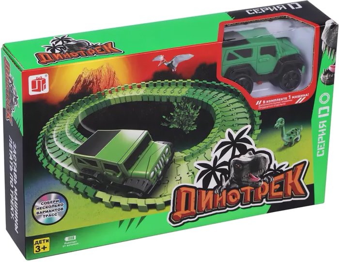 | Информация | Заставь машину летать по треку вместе с игровым набором «Автотрек»! Собери свою уникальную трассу! В комплекте: детали – 48 шт., фигурки динозавров – 4 шт., машинка. Машинка работает от одной батарейки типа AA на 1,5 V (не входит в комплект). Длина машинки – 8 см. Изготовлено из полимерных материалов. |