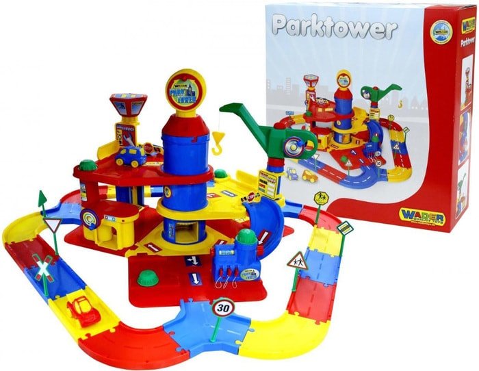 | Информация | Паркинг представляет собой трехуровневую парковку, куда автомобили можно поднимать на лифте, а спускать по съездам. Машинки (2шт.), входящие в набор, можно обслужить в игрушечном автосервисе - проверить автомобиль на подъёмнике, "помыть" на автомойке, а заправить на АЗС, выбрав подходящее топливо. Лифт, мойка и эстакада приводятся в движение при вращении установленных рукояток, так же как и подъемный кран. Паркинг оснащен дорогой с 10 дорожными знаками |