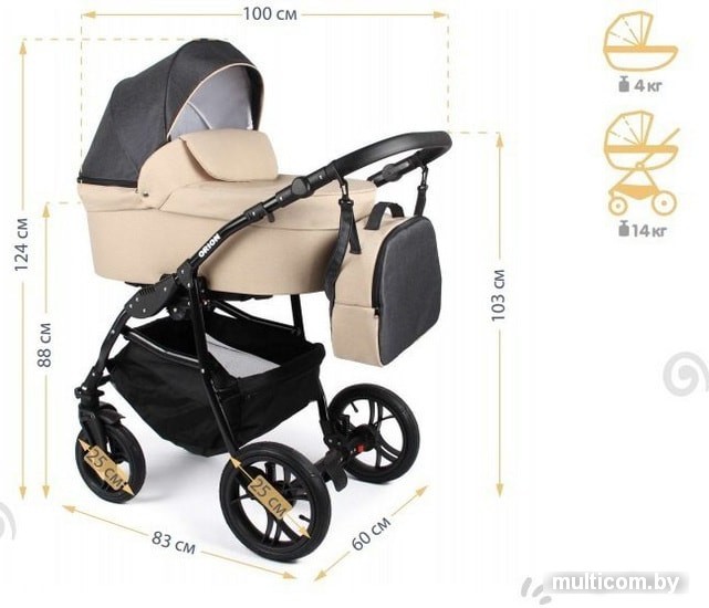 | Вес | 14 кг (шасси+люлька; 10 кг шасси; 4 кг люлька; 5 кг прогулочный блок) |