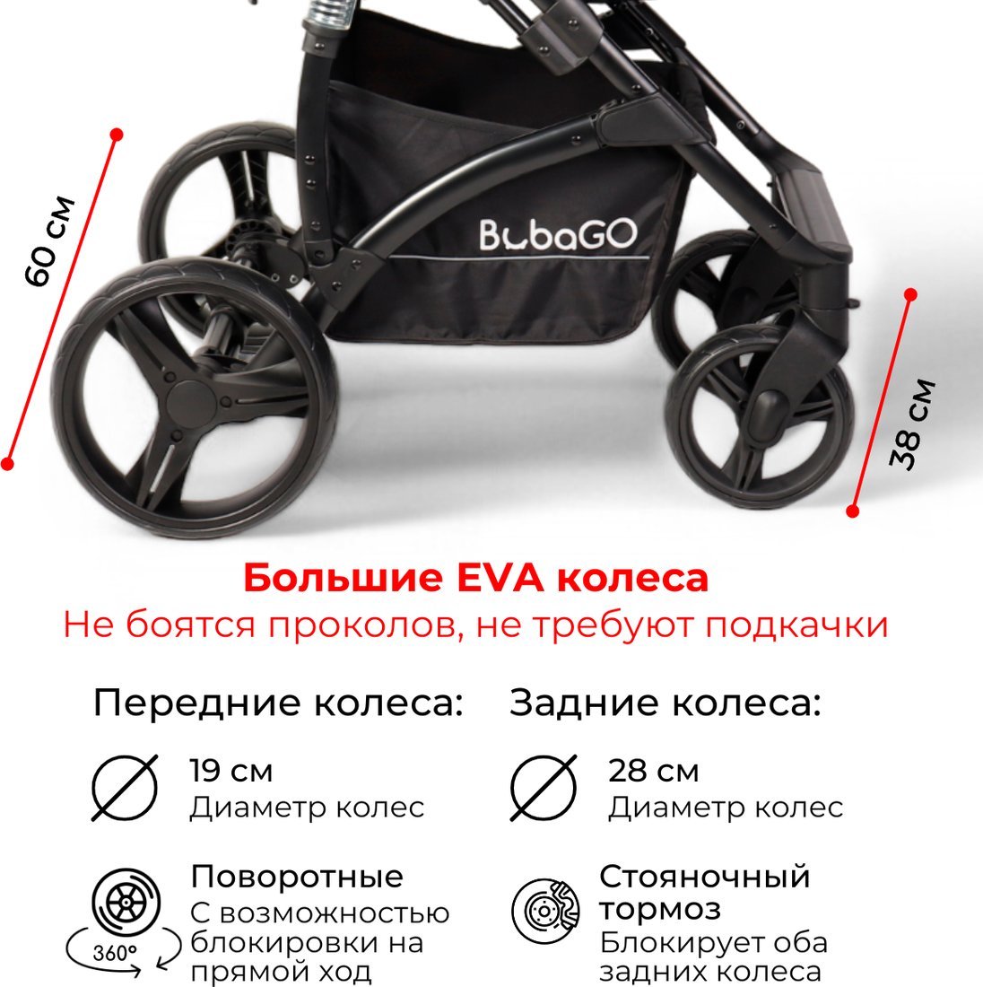 | Диаметр передних колес | 19 см |