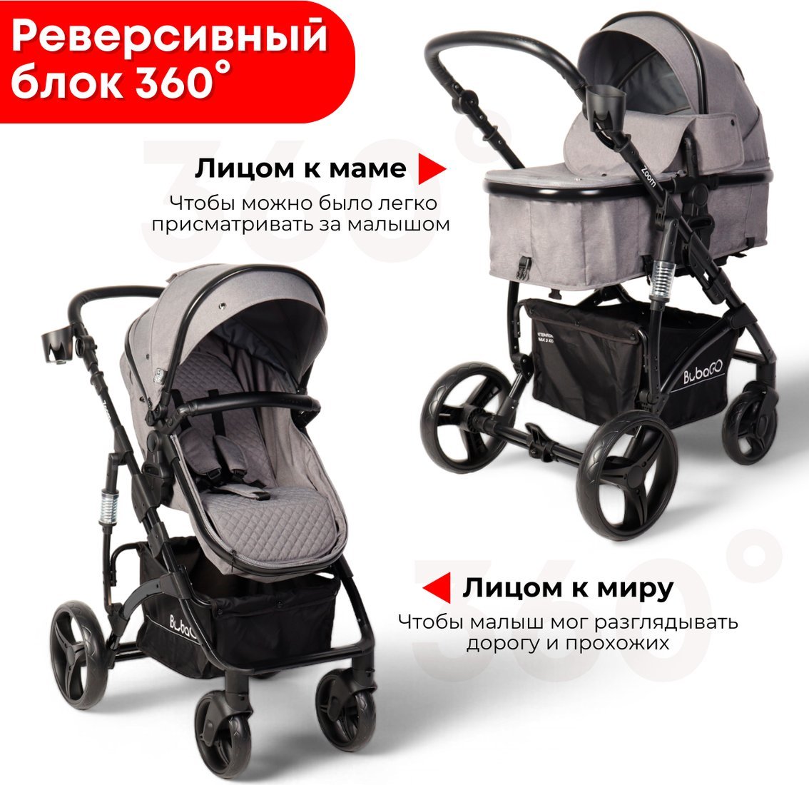 | Информация | Особенности коляски: Удобная трансформация: легко превращается из люльки в прогулочный блок и обратно. Реверсивный блок: можно установить лицом к маме или к окружающему миру. Пружинная амортизация на всех 4-х колесах и дополнительные пружины на раме коляски обеспечивают уникальную проходимость коляски и максимально комфортные прогулки для вас и вашего малыша. Максимальная комплектация: теплый чехол для ножек, дождевик, москитная сетка, подстаканник, стеганый матрасик-вкладыш и рюкзак для мамы. Удобный задний тормоз: не пачкает обувь и обеспечивает надежную остановку. Преимущества люльки и прогулочного блока: Люлька трансформируется в прогулочный блок всего за пару движений. Спинка регулируется до горизонтального положения, что позволяет ребенку комфортно спать. Капюшон увеличивается благодаря дополнительной секции и оснащен смотровым/вентиляционным окном с магнитом. Дополнительные преимущества: Чехлы из плотной ткани с защитной водооталкивающей пропиткой и защитой от UV излучения, предотвращающей загрязнение, выгорание и проникновение влаги. Съемный откидной поворотный бампер для удобного доступа к малышу. Просторная корзина для необходимых вещей. Передние поворотные колеса с фиксацией на прямой ход для сложных участков дороги. Пружинная амортизация, поглощающая вибрацию. Легкие колеса из EVA-матриеала для мягкого и бесшумного хода, не требующие ухода. Задние колеса большого диаметра превращают коляску в настоящий вездеход. Удобный кармашек для мелочей. Компактные размеры в сложенном виде для удобного хранения и транспортировки. BubaGO Zoom сочетает в себе надежность, функциональность и комфорт, делая каждую прогулку с ребенком приятной и удобной. |