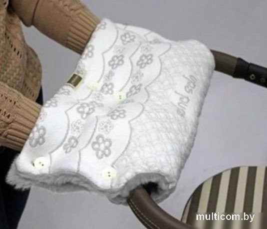| Информация | - Муфта для коляски «Цветочки» создана для того, чтобы ваши руки не мерзли во время прогулок с малышом в холодное время года. - Верхний слой муфты водонепроницаемый, он изготовлен из акрила и украшен накладками с рисунком, внутренний слой из мягкого натурального хлопка обеспечивает руками тепло и комфорт. - Муфта слитная, с застежкой на пуговицы в трех местах. - В комплект входит также чехол на липучке для ручки коляски. |