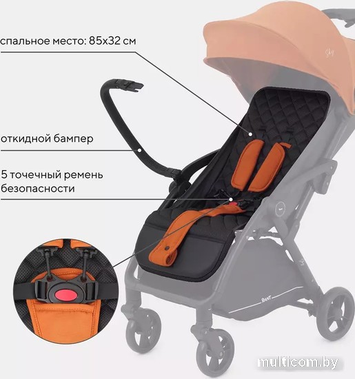 | Информация | ? Сиденье и спинка отделаны мягким потоотводящим материалом, используемым в спортивном снаряжении ? Многопозиционная спинка для активных прогулок и спокойного сна ? Регулируемый капюшон укроет ребенка от солнца и непогоды ? Надежный регулируемый 5-точечный ремень обеспечит крохе дополнительную безопасность ? Регулируемая подножка обеспечит дополнительный комфорт во время отдыха ? Для знойных дней изголовье коляски дополнено большим вентиляционным окном на молнии ? Чехлы изготовлены из гипоаллергенной тактильно приятной ткани ? Благодаря инновационной системе автоматически складывается сама, без каких либо усилий со стороны ? В сложенном виде устойчиво стоит в вертикальном положении ? Страховочный ремень на ручке, чтобы коляска не уехала от порыва ветра и не укатилась по наклонной поверхности ? Максимально легкий вес ? Подстаканник для любимых напитков ? Бампер удобно откидывается одной рукой ? В капюшоне просторный карман на молнии для важных мелочей ? Надежный тормоз удобно расположен сбоку ? Нижняя часть подножки отделана экокожей - вы без труда избавитесь от грязи, оставленной крохотными ботиночками ? Сверхманевренность коляске дарят плавающие передние колеса ? В комплектации объемный чехол с встроенными лямками, чтобы удобно переносить сложенную коляску как рюкзак |