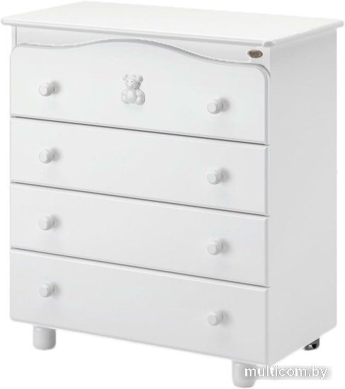 | Информация | Детский комод Nuovita Fasto создан для вашего удобства• четыре вместительных ящика с надежным механизмом открывания/закрывания;• две ножки для удобного и быстрого перемещения комода;• съемная пеленальная доска с бортиками, которая легко устанавливается и снимается;• отсутствие острых углов;• несколько цветовых схем и забавный медвежонок на верхнем ящике. |