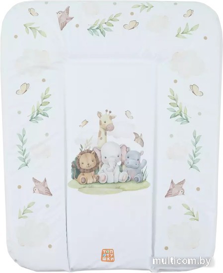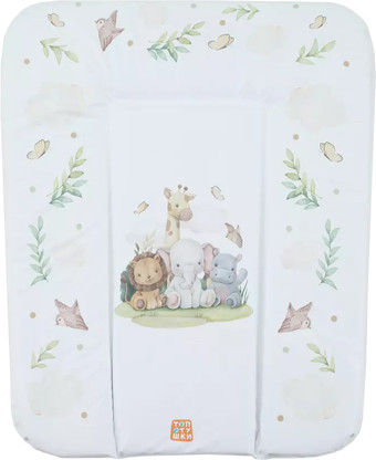 Информация | ? Мягкий матрасик с принтами дружных зверяток для пеленания и гигиенических процедур. ? Идеально подходит для любого пеленального комодика. ? Три защитных края для комфорта крохи. ? Практичная, моющаяся обивка из гипоаллергенного материала. ?? Сертифицирован в соответствии со стандартами безопасности. |
