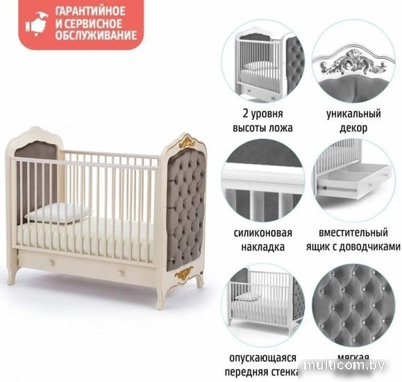 | Информация | Детская кровать Fulgore от итальянской марки Nuovita — это великолепная высококачественная кроватка из древесины бука, в которой классическая конструкция сочетается с изящной формой. Дизайн модели перекликается с элегантной мебелью эпохи рококо, а при изготовлении используются современные экологичные материалы из древесины. |