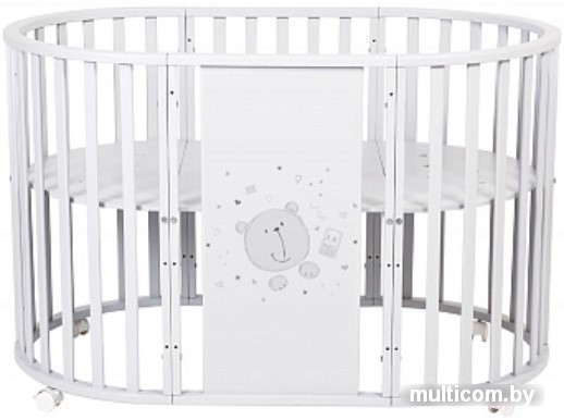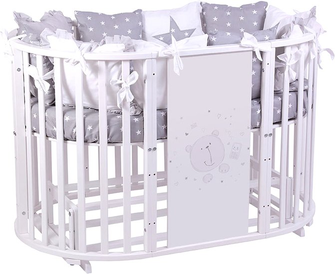 | Варианты трансформации | круглая колыбелька, пеленальный столик, манеж, приставная кроватка, стол, стулья/стул |