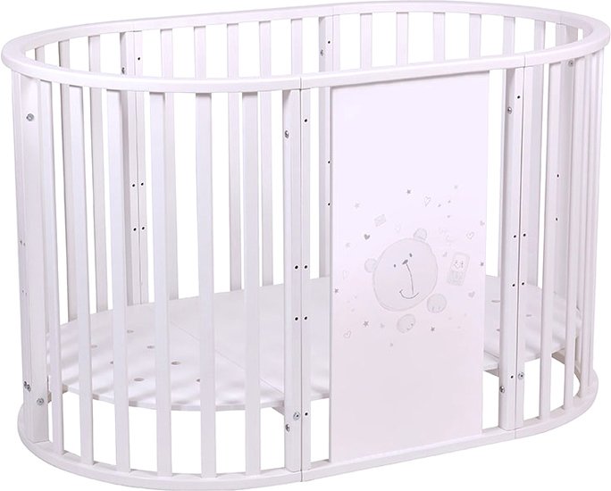 | Информация | Кроватка круглая детская Polini French 925, Teddy 8 в 1 - современное и стильное решение для детской комнаты. Благодаря своей форме она напомнит малышу мамин животик и улучшит сон младенца. Данная модель включает в себя боковую планку, что делает ее более функциональной и практичной. Мультифункциональная модель трансформируется в целых 8 предметов: 1. Колыбель (без маятника) с размером ложа 75х75 см. Круглая форма кровати успокоит малыша, подарит крепкий и сладкий сон. Ее небольшие размеры помогают ребенку чувствовать себя в безопасности. Кроватку можно использовать как колыбельную круглой формы от 0 и до 6 месяцев, установив ложе в нужное положение. Дополнительно можно приобрести маятник, который превращает кровать в полноценную качалку для малыша. 2. Пеленальный столик. Прочный и надежный пеленальный столик из массива березы поможет маме с удобством запеленать или переодеть младенца. Используется вместе с колыбелью на первом этапе жизни новорожденного малыша. Стол имеет компактные размеры, поэтому подойдет для использования в небольших помещениях. Снабжен полочкой для расположения всех необходимых детских принадлежностей. 3. Кроватка детская Polini 905 с размером ложа 125х75 см. Имеет 3 уровня для установки дна: 52 см. от пола, 42 см. от пола и 22 см. от пола. Кровать без острых углов имеет полукруглую форму, что оказывает положительное влияние на сон и эмоциональное состояние новорожденного. 4. Кроватка приставная. Кроватку Polini 905 можно использовать, как приставную, для этого в комплектации имеется планка для крепления уголков и фиксации к взрослой кровати. Сон в приставной кроватке помогает скоординировать периоды сна и бодрствования, облегчает процесс кормления мамы. 5. Кроватка-диванчик. Без установки уголков кровать можно использовать, как диванчик. Когда ребенок подрастет, сможет самостоятельно залезать и вылезать из кроватки. 6. Кроватка-манеж. Кроватку можно использовать, как манеж, достаточно установить дно в нижнее положение и снять колесные опоры. В первую очередь манеж является безопасным и незаменимым местом для игр ребенка. Мама может спокойно оставить ребенка на несколько минут, чтобы отлучиться или заняться необходимыми делами. Малыш будет в полной безопасности и защищен от травм и воздействия внешнего мира. 7. 2 кресла. Кроватку можно трасформировать в игровую мебель: 2 кресла и столик. 8. Столик. Даже когда ребенок вырастет кроватка не станет бесполезным предметов мебели. Стол и кресла нужны ребенку,чтобы заниматься рисованием,лепкой и играми. К вашему малышу пришли друзья? Детей можно удобно и легко разместить благодаря данным предметам мебели. Габариты изделия: Габаритные размеры кровати: 87х82,5х132,5 см Габаритный размер колыбели - 82,5 х87 см Размер ложа колыбели- 75х75 см. Размер ложа кроватки- 125х75 (приставная, простая, кровать-манеж). Габаритный размер столика - 82,5х50х81,5 см Размер пеленального матраса для столика – 50х75 см Высота до столешницы пеленального столика – 75 см Размер кресла- 41,2х82,5х81 см Максимальная толщина матраса-10 см |