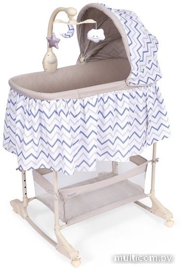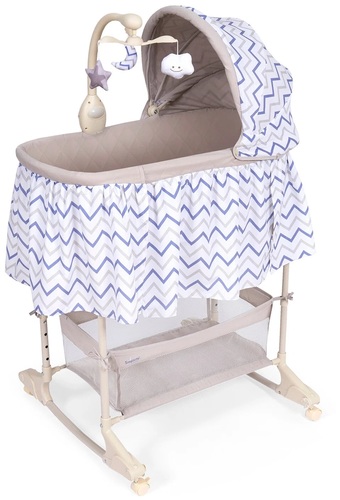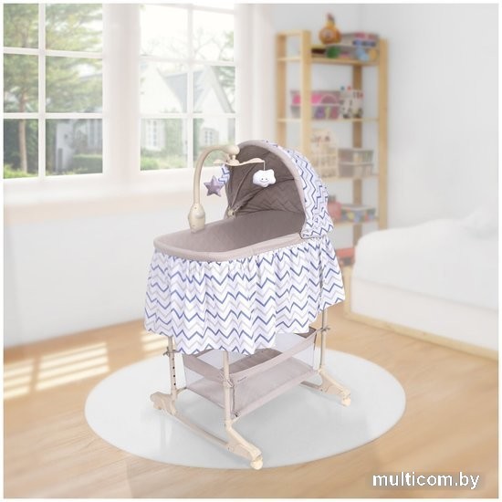 | Информация | Simplicity 4030 Classic — это современная колыбель-кроватка для новорожденного с электронной «начинкой», благодаря которой колыбель становится полезным гаджетом для родителей. Колыбель предлагает 2 варианта укачивания: с помощью режима виброкачания и вручную на поперечных полозьях. Виброукачивание помогает малышам, которых беспокоит вздутие живота и колики, а ручное укачивание на полозьях будет возможным после того, как колесики сложатся внутрь полозьев. Чтобы предотвратить случайное перемещение колыбели предусмотрены фиксаторы на колесиках. Также в колыбели предусмотрена возможность изменения наклона ложа, что позволяет отходить воздуху после кормления и предотвращается срыгивание пищи у новорожденного. Кнопки на мобиле регулируют интенсивность вибрации, включают проигрывание музыкальных мелодий, заложенных в память устройства, и воспроизведение музыки в формате MP3. Одновременно можно запустить вращение подвесных игрушек и ночную подсветку. Имеется регулировка звучания по громкости. Колыбель Simplicity 4030 Classic можно использовать в качестве приставной кроватки, которая регулируется по уровню родительской постели — для этого предусмотрена съемная стенка. Чтобы малыша было удобно укладывать в колыбель, рекомендуется отворачивать мобиль в сторону. Для защиты спящего ребенка от яркого света имеется удобный складной капор. Внизу находится тканевая корзина, в которой можно хранить постельное белье. При помощи встроенных в полозья колес колыбель легко перемещается по квартире. Ножки, каркасы люльки и капора представляют собой трубчатые металлические рамы, соединительные элементы которых сделаны из ударопрочного пластика. Тканевая обивка изготовлена из плотной моющейся ткани и снимается для стирки. Колыбель-кроватка для новорожденного Simplicity 4030 Classic — это удачное сочетание очаровательного внешнего вида и полезного современного функционала. Она понравится как малышу, так и его родителям и станет центральным элементом детской. Особенности. Комплектация: колыбель, съёмный матрасик, капор, электронный мобиль с тремя игрушками, тканевая корзина для белья. Максимальная нагрузка, кг: 9. Размер спального места, см: 80x40x26. Высота, см: 128. Тип и количество элементов питания: 2 х LR6 (тип AA) (не входят в комплектацию). Рама: сталь. Дно колыбели: МДФ. АБС-пластик, полипропилен. Текстиль 100% полиэстер. Габариты, см: 74х72х128. |