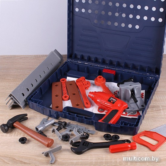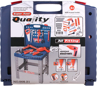 | Информация | ? Замечательный подарок для маленьких мастеров ? Чемоданчик с инструментами, выглядящими и функционирующими как настоящие ? Можно поставить его на прочные, устойчивые пластиковые ножки и вот — стол для работы готов ? В наборе имеется электрическая дрель, которая может использоваться и как электродрель, и как шуруповерт ? Мальчишки будут в восторге от такого подарка ?? Батарейки в комплект не входят |