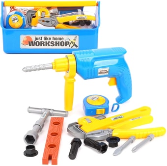| Состав набора | дрель (со сверлом 1 шт), плоскогубцы (1 шт), гаечный ключ (т-образный 1 шт), струбцина (1 шт), рулетка (сантиметр 1 шт), болт (2 шт), гайка (2 шт), соединительная пластина (1 шт), кейс (ящик), насадка (плоская 1 шт, крестовая 1 шт) |