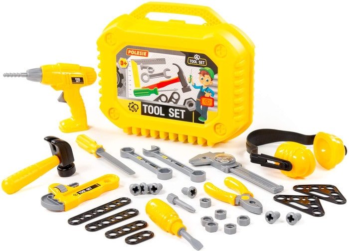 | Информация | Наборы инструментов, производимые компанией «Полесье», могут использоваться как для проведения групповых занятий в дошкольных учреждениях, так и для самостоятельной игры ребёнка. Все инструменты, входящие в набор, функционально идентичны взрослым аналогам и позволяют развивать мелкую моторику, координацию ребенка, точность движений. Набор инструментов помогает познакомить детей с основными особенностями взаимодействия отдельных частей и деталей, развивает пространственное воображение. В комплект входит: шуруповерт (1 шт.), строительные наушники (1 шт.), штангенциркуль (1 шт.), нож строительный (1 шт.), пассатижи (1 шт.), молоток (1 шт.), отвёртка со сменными насадками (1 шт.), рожково–накидной гаечный ключ (1 шт.), накидной гаечный ключ (1 шт.), напильник (1 шт.), болты (6 шт.), гайки (6 шт.), соединительные пластины (6 шт.), чемоданчик для инструментов. |
