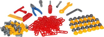 | Информация | Набор инструментов помогает познакомить детей с основными особенностями взаимодействия отдельных частей и деталей, развивает пространственное воображение. Комплект включает в себя: - отвертку со сменными наконечниками (крестообразный и прямой шлиц) – 1 шт., - ключ комбинированный: рожковый и накидной – 1 шт., - вороток с шестигранной головкой – 1 шт., - шестигранник – 1 шт., - пассатижи – 1 шт., - угольник с линейкой – 1 шт., - соединительные пластины – 40 шт., - болты для шестигранника – 20 шт., - болты для ключа и отвертки – 20 шт., - гайки – 40 шт. Производитель данный товар по цвету не маркирует. |