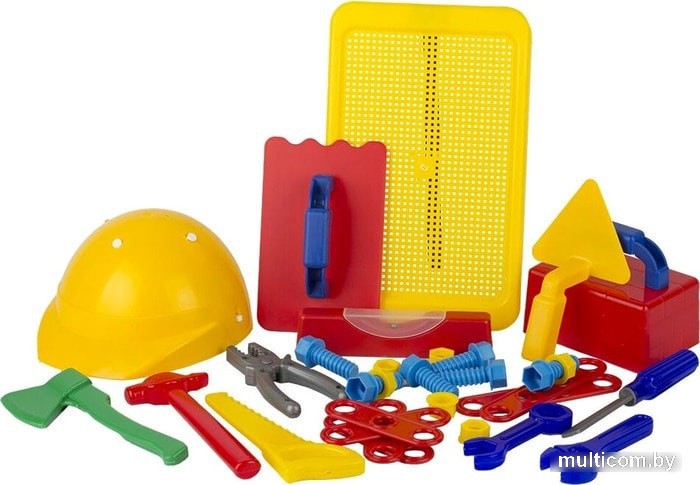 | Информация | Состав Игрового набора «Строитель» №3 в сумке ПВХ: каска, мастерок, сито, терка, уровень, ножовка, топор, молоток, форма кирпич, гаечный ключ 2 шт., плоскогубцы, напильник, болт 6 шт., гайка 6 шт., планка 6 шт. Набор из пластмассы. Реалистичные , яркие инструменты и детали заинтересуют ребенка. Игра с таким набором развивает в ребенке трудолюбие, сюжетно-ролевое мышление, воображение и мелкую моторику, познакомит с названием и назначением инструментов. Игрушка изготовлена из высококачественных материалов. Изделие проверено на соответствие требованиям технических регламентов Таможенного Союза и имеет сертификацию ЕАС. |