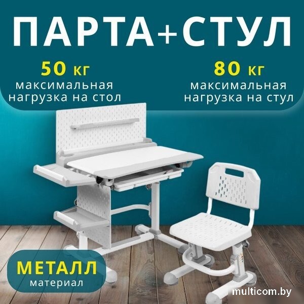 | Информация | Преимущества: Эргономичная форма мебели. Регулировка угла наклона столешницы от 0 до 60°. Регулировка высота стола и стула. Выдвижной пенал-органайзер. Перфорированные панель с дополнительной полкой. 2 боковые полки. Регулятор устойчивости опор на ножках стола и стула. Ручка для переноски на спинке стула. Подставка для ног. |