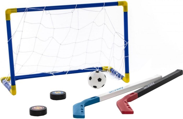 | Информация | Этот «детский хоккей» можно использовать круглый год: летом — играть с мячом на траве, зимой — на льду и с шайбой. Он прост в сборке и использовании, у ребенка не возникнет сложностей при подготовке к игре. В увлекательной манере малыш узнает правила хоккея и мир спорта, учится самостоятельности. Эта простая игра развивает смекалку, ловкость, навыки общения. Вся семья оценит универсальность, легкость и разнообразие применения набора.Для подготовки к игре соберите ворота: они состоят из шести уголков и шести трубок, соедините трубки с уголками, сверху наденьте сетку. Сетка накидывается на уголки. Клюшки требуют сборки, состоят из палки и наконечника. В комплекте 2 шайбы для игры на льду и мяч для игры в хоккей на траве. Для игры мяч необходимо надуть с помощью насоса из комплекта. |