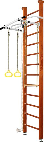 | Информация | Домашний спортивный комплекс Helena Ceiling 3 м - это красивая, надежная и безопасная шведская стенка из натурального дерева, дополненная турником и подвесными элементами. Для стоек применена сосна, для ступеней – береза, с итальянским покрытием. Для такой модели найдется место даже в небольшой детской, а малыш получит возможность больше времени проводить в движении, укреплять мышцы, развивать ловкость и координацию движений. Данная модель с креплением враспор между полом и потолком. Это отличный вариант для квартир с хрупкими стенками из гипсокартона. Крепление враспор не требует сверлить стены и позволяет в случае необходимости сделать перестановку в детской, перенеся ДСК. |