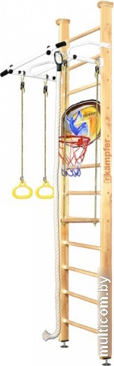 | Информация | Классическая модель Helena Ceiling с баскетбольным щитом Kampfer, в который можно с удовольствием играть часами как в одиночку, так и устраивать соревнования с друзьями и родителями, ведь даже взрослым будет интересна такая игра. Вы сможете постепенно усложняя игру перевешивать щит выше на одну ступеньку. Упражнения с мячом прекрасно тренируют мышцы рук, увеличивая ловкость и внимание, занимают и одновременно физически развивают ребенка, что очень полезно для здоровья.Конструкция выполнена из натурального дерева, все края деталей немного скруглены обеспечивая большую безопасность для ребенка. Крепление враспор между потолком и полом удобно тем, что подходит для любых стен, и комплекс можно передвигать с места на место. Но потолок не должен быть из хрупких материалов, таких как гипсокартон (навесные) и вагонка, для них лучше подойдут пристенные модели. Комплектация: — турник, трапеция, канат, кольца гимнастические, баскетбольный щит с мячом. |