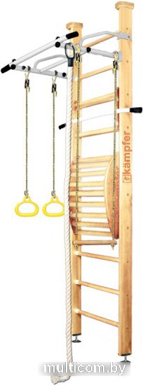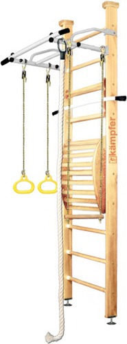 | Информация | Домашний спортивный комплекс Kampfer Helena Maxi Ceiling Детский спортивный комплекс ДСК Kampfer Helena Maxi Ceiling это дополненная версия одной из самых популярных моделей из линейки деревянных ДСК Kampfer. Модель Kampfer Helena Maxi Ceiling включает в себя набор из самых популярных навесных аксессуаров канат, кольца и трапецию, а также тренажер для спины Kampfer Posture Wall. Модель Kampfer Helena Maxi Ceiling включает в себя тренажер для спины Kampfer Posture. Тренажерный комплекс Kampfer Posture предназначен для занятий физическими упражнениями, позволяющими расслаблять, разминать и массировать мышцы спины в домашних условиях. Kampfer Posture это тренажер для улучшения осанки, поэтому в первую очередь необходимо привлечь к занятиям подростков, и даже маленьких детей. Им неприменно понравиться занятия на тренажере под Вашим руководством и присмотром. При помощи различных упражнений на Kampfer Posture Вы сможете укрепить мышцы спины и многие другие группы мышц. Регулярные занятия очень полезны для Вашего здоровья. Уделяя им по 15-20 минут в день Вы сами почувствуете как в скором времени окрепнет Ваше тело и выпрямится осанка. Комплектация: — турник — шведская стенка — канат — кольца — трапеция — тренажер Kampfer Posture 2 с турником |