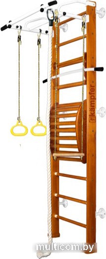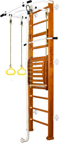 | Информация | Детский спортивный комплекс ДСК Kampfer Helena Maxi Wall это дополненная версия одной из самых популярных моделей из линейки деревянных ДСК Kampfer. Пристенная шведская стенка Helena теперь в новой цветовой гамме, что позволяет подобрать нужный оттенок под дизайн помещения. Модель Kampfer Helena Maxi Wall включает в себя набор из самых популярных навесных аксессуаров канат, кольца и трапецию, а также тренажер для спины Kampfer Posture Wall. Крепкий металлический турник выдерживает нагрузку до 120 кг, подходит как детям так и взрослым. Навесное оборудование Kampfer на прочных тросах выдерживает нагрузку до 100кг. Особенностью пристенной шведской стенки Kampfer Helena Maxi является шесть креплений к стене, в отличие от обычных пристенных моделей, у которых только четыре крепления.Увеличение количества креплений до шести обеспечивает самые надежные и максимально безопасные занятия на ДСК Kampfer. Модель Kampfer Helena Maxi Wall включает в себя тренажер для спины Kampfer Posture Wall. Тренажерный комплекс Kampfer Posture предназначен для занятий физическими упражнениями, позволяющими расслаблять, разминать и массировать мышцы спины в домашних условиях. Kampfer Posture это тренажер для улучшения осанки, поэтому в первую очередь необходимо привлечь к занятиям подростков, и даже маленьких детей. Им непременно понравиться занятия на тренажере под Вашим руководством и присмотром. При помощи различных упражнений на Kampfer Posture Вы сможете укрепить мышцы спины и многие другие группы мышц. Регулярные занятия очень полезны для Вашего здоровья. Уделяя им по 15-20 минут в день Вы сами почувствуете как в скором времени окрепнет Ваше тело и выпрямится осанка. Комплектация: — турник — шведская стенка — канат — кольца — трапеция — тренажер Kampfer Posture 2 с турником |