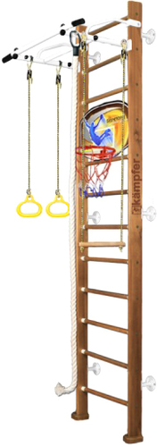 ИнформацияДомашний спортивный комплекс Helena Wall Basketball Shield включает в себя набор из самых популярных навесных аксессуаров канат, гимнастические кольца, трапецию и баскетбольный щит с мячом.