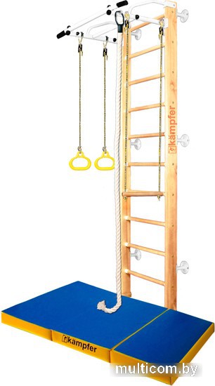 | Информация | Классическая модель Helena Wall с матом Kampfer №6 (150 х 100 х 10) складным. Пристенная шведская стенка Helena Wall Combo Mat №6 включает в себя набор из самых популярных навесных аксессуаров канат, гимнастические кольца, трапецию, а также Kampfer Мат №6 (150 х 100 х 10) складной. Kampfer Мат №6 (150 х 100 х 10) складной создан для надежной защиты ребенка от ссадин, ушибов, травм а благодаря складной конструкции мат можно использовать в играх создавая стены вокруг шведской стенки. Применение современных износостойких материалов позволяет надолго сохранить насыщенность цвета, защищает и надолго сохраняет презентабельный вид мата Kampfer, увеличивая срок службы. Яркий дизайн несомненно подойдет к любой обстановке и станет украшением любой детской комнаты. Прекрасно экономит свободное место! Складная конструкция позволяет максимально сократить размеры мата, что облегчает его перевозку и хранение. Шведская стенка Kampfer Helena Combo Mat №6 - настоящая находка для всей семьи. Шведская стенка адаптирована для всех членов семьи любого пола и возраста. Натуральный массив сосны экологически безопасен для детей самого раннего возраста. Шведская стенка с креплением: к стене. Можно использовать для помещений с подвесными и натяжными потолками. Не подходит при хрупких и гипсокартонных стенах. |