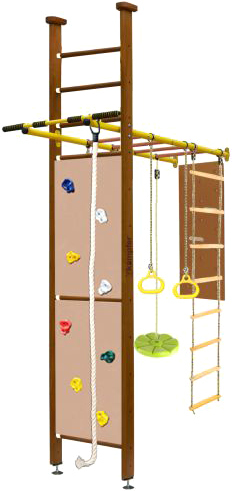 | Информация | Уникальная конструкция Joy включает в себя классическую шведскую стенку с скалодромом, металлический турник с рукоходом и набор из самых популярных навесных аксессуаров канат, кольца, веревочную лестницу, пластикову лиану, а также новинку деревянный пегборд. Крепкий металлический турник выдерживает нагрузку до 120 кг. Навесное оборудование на прочных тросах выдерживает нагрузку до 100 кг. Допустимая нагрузка на скалолаз, пегборд 50 кг. Особенностью шведской стенки Joy является уникальная конструкция, совмещающая в себе и пристенное и распорное крепление, большой двойной скалолаз имеющий 8 пластиковых зацепов. Малышам очень нравится - лазить по скалолазу, забираться вверх по веревочной лестнице, перебираться по пегборду, висеть на канате и качаться на лиане - играя одновременно тренироваться, выполняя все необходимые для физизического развития упражнения. |