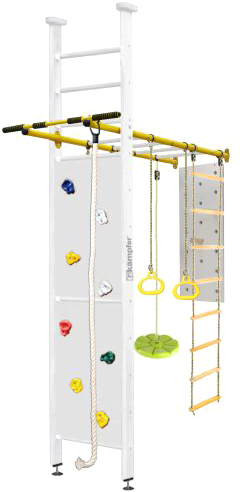 | Информация | Уникальная конструкция Joy включает в себя классическую шведскую стенку с скалодромом, металлический турник с рукоходом и набор из самых популярных навесных аксессуаров канат, кольца, веревочную лестницу, пластикову лиану, а также новинку деревянный пегборд. Крепкий металлический турник выдерживает нагрузку до 120 кг. Навесное оборудование на прочных тросах выдерживает нагрузку до 100 кг. Допустимая нагрузка на скалолаз, пегборд 50 кг. Особенностью шведской стенки Joy является уникальная конструкция, совмещающая в себе и пристенное и распорное крепление, большой двойной скалолаз имеющий 8 пластиковых зацепов. Малышам очень нравится - лазить по скалолазу, забираться вверх по веревочной лестнице, перебираться по пегборду, висеть на канате и качаться на лиане - играя одновременно тренироваться, выполняя все необходимые для физизического развития упражнения. |