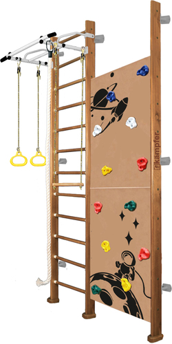| Информация | Детский спортивный комплекс ДСК Kampfer Jungle Wall это классическая версия шведской стенки одной из самых популярных моделей из линейки деревянных ДСК Kampfer дополненная скалолазом с новым интересным дизайном для мальчиков. Пристенная шведская стенка Jungle представлена в различной цветовой гамме, что позволяет подобрать нужный оттенок под дизайн помещения. Модель Kampfer Jungle включает в себя набор из самых популярных навесных аксессуаров канат, кольца, трапецию и скалолаз. Крепкий металлический турник выдерживает нагрузку до 120 кг, подходит как детям так и взрослым. Навесное оборудование Kampfer на прочных тросах выдерживает нагрузку до 100кг. Допустимая нагрузка на скалолаз 50 кг. Особенностью шведской стенки Kampfer Jungle является большой двойной скалолаз имеющий 12 пластиковых зацепов. Конструкция выполнена из натурального дерева, все края деталей немного скруглены обеспечивая большую безопасность для ребенка. Крепление: к стене. Можно использовать для помещений с подвесными и натяжными потолками. Не подходит при хрупких и гипсокартонных стенах, для них лучше подойдут модели с креплением враспор. |