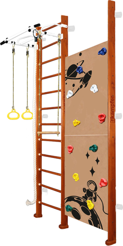 ИнформацияДетский спортивный комплекс ДСК Kampfer Jungle Wall это классическая версия шведской стенки одной из самых популярных моделей из линейки деревянных ДСК Kampfer дополненная скалолазом с новым интересным дизайном для мальчиков. Пристенная шведская стенка Jungle представлена в различной цветовой гамме, что позволяет подобрать нужный оттенок под дизайн помещения.