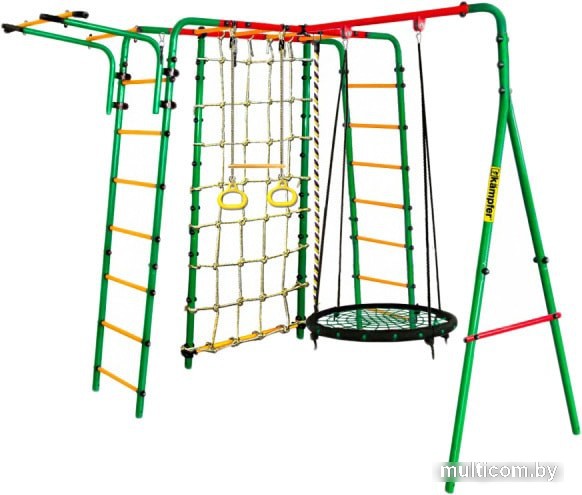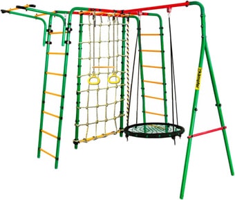 | Информация | Конструкция представляет собой А-образную опору из 2х металлических стоек, соединенных между собой и П-образную опору из 2 металлических шведских стенок, соединенных рукоходом. Дети с удовольствием играют на этом детском спортивном уголке часами, при этом укрепляются мышцы, развивается ловкость и физическое здоровье малышей. Удлиненный выступ турника и его более широкий захват позволяют выполнить множество упражнений на развитие мышц спины, пресса, рук и ног. |
