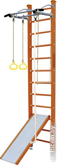 | Информация | Модель включает в себя классическую шведскую стенку, металлический турник и набор из самых популярных навесных аксессуаров канат, кольца, трапецию, а также новинку двухсторонний скат-скалолаз. Крепкий металлический турник выдерживает нагрузку до 120 кг, подходит как детям так и взрослым. Навесное оборудование Kampfer на прочных тросах выдерживает нагрузку до 100 кг. Особенностью шведской стенки Kampfer Ride является двух сторонний скат-скалолаз имеющий с одной стороный гладкую поверхность, а с другой несколько деревяных зацепов. Малышам очень нравится - лазить по скалолазу и скатываться с мини-горки. Скат-скалолаз подходит для детей в возрасте от 7 месяцев до 4 лет, устанавливается на ступени шведской стенки и выдерживает максимальную нагрузку до 50 кг. Конструкция шведской стенки Kampfer выполнена из натурального дерева, все края деталей немного скруглены обеспечивая большую безопасность для ребенка. Крепление враспор между потолком и полом удобно тем, что подходит для любых стен, и комплекс можно передвигать с места на место. Но потолок не должен быть из хрупких материалов, таких как гипсокартон (навесные) и вагонка, для них лучше подойдут пристенные модели. Комплектация: — турник — шведская стенка — канат — кольца — трапеция — скат-скалолаз Для того, чтобы уберечь Ваших детей от ушибов при падениях и прыжках рекомендуем приобрести гимнастический мат. |