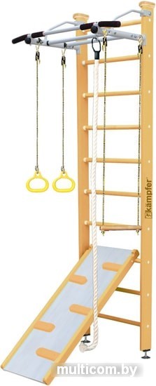 | Информация | Модель включает в себя классическую шведскую стенку, металлический турник и набор из самых популярных навесных аксессуаров канат, кольца, трапецию, а также новинку двухсторонний скат-скалолаз. Крепкий металлический турник выдерживает нагрузку до 120 кг, подходит как детям так и взрослым. Навесное оборудование Kampfer на прочных тросах выдерживает нагрузку до 100 кг. Особенностью шведской стенки Kampfer Ride является двух сторонний скат-скалолаз имеющий с одной стороный гладкую поверхность, а с другой несколько деревяных зацепов. Малышам очень нравится - лазить по скалолазу и скатываться с мини-горки. Скат-скалолаз подходит для детей в возрасте от 7 месяцев до 4 лет, устанавливается на ступени шведской стенки и выдерживает максимальную нагрузку до 50 кг.Конструкция шведской стенки Kampfer выполнена из натурального дерева, все края деталей немного скруглены обеспечивая большую безопасность для ребенка.Крепление враспор между потолком и полом удобно тем, что подходит для любых стен, и комплекс можно передвигать с места на место. Но потолок не должен быть из хрупких материалов, таких как гипсокартон (навесные) и вагонка, для них лучше подойдут пристенные модели.Комплектация:— турник— шведская стенка— канат— кольца— трапеция— скат-скалолазДля того, чтобы уберечь Ваших детей от ушибов при падениях и прыжках рекомендуем приобрести гимнастический мат. |