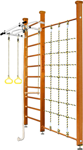 | Информация | Модель включает в себя набор из самых популярных навесных аксессуаров канат, кольца и трапецию. Крепкий металлический турник выдерживает нагрузку до 120 кг, подходит как детям так и взрослым. Навесное оборудование Kampfer на прочных тросах выдерживает нагрузку до 100 кг. В дополнении к основным аксессуарам в комплектации идет канатный лаз - это прочная сетка шириной 80 см из крепкого шнура выдерживает нагрузку до 100 кг. Стойка с сеткой значительно расширяет игровое пространство детской комнаты и позволяет разнообразить функциональность классической шведской стенки Kampfer. Крепление: враспор между потолком и полом удобно тем, что подходит для любых стен, и комплекс можно передвигать с места на место. Но потолок не должен быть из хрупких материалов, таких как гипсокартон (навесные) и вагонка, для них лучше подойдут пристенные модели. Комплектация: — турник — шведская стенка — канат — кольца — трапеция — стойка с сеткой Для того, чтобы уберечь Ваших детей от ушибов при падениях и прыжках рекомендуем приобрести гимнастический мат. |