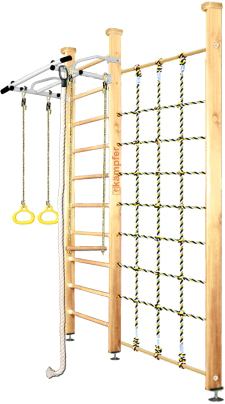 | Информация | Модель включает в себя набор из самых популярных навесных аксессуаров канат, кольца и трапецию. Крепкий металлический турник выдерживает нагрузку до 120 кг, подходит как детям так и взрослым. Навесное оборудование Kampfer на прочных тросах выдерживает нагрузку до 100 кг. В дополнении к основным аксессуарам в комплектации идет канатный лаз - это прочная сетка шириной 80 см из крепкого шнура выдерживает нагрузку до 100 кг. Стойка с сеткой значительно расширяет игровое пространство детской комнаты и позволяет разнообразить функциональность классической шведской стенки Kampfer. Крепление: враспор между потолком и полом удобно тем, что подходит для любых стен, и комплекс можно передвигать с места на место. Но потолок не должен быть из хрупких материалов, таких как гипсокартон (навесные) и вагонка, для них лучше подойдут пристенные модели. Комплектация: — турник — шведская стенка — канат — кольца — трапеция — стойка с сеткой Для того, чтобы уберечь Ваших детей от ушибов при падениях и прыжках рекомендуем приобрести гимнастический мат. |