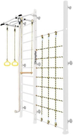 | Информация | Модель включает в себя набор из самых популярных навесных аксессуаров канат, кольца и трапецию. Крепкий металлический турник выдерживает нагрузку до 120 кг, подходит как детям так и взрослым. Навесное оборудование Kampfer на прочных тросах выдерживает нагрузку до 100 кг. В дополнении к основным аксессуарам в комплектации идет канатный лаз - это прочная сетка шириной 80 см из крепкого шнура выдерживает нагрузку до 100 кг. Стойка с сеткой значительно расширяет игровое пространство детской комнаты и позволяет разнообразить функциональность классической шведской стенки Kampfer.Особенностью пристенной шведской стенки является восемь креплений к стене, в отличие от обычных пристенных моделей, у которых только четыре крепления. Увеличение количества креплений до восьми обеспечивает самые надежные и максимально безопасные занятия на шведской стенке Kampfer Winner.Крепление: к стене. Можно использовать для помещений с подвесными и натяжными потолками. Не подходит при хрупких и гипсокартонных стенах, для них лучше подойдут модели с креплением враспор.Комплектация:— турник— шведская стенка— канат— кольца— трапеция— стойка с сеткойДля того, чтобы уберечь Ваших детей от ушибов при падениях и прыжках рекомендуем приобрести гимнастический мат. |