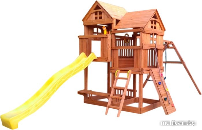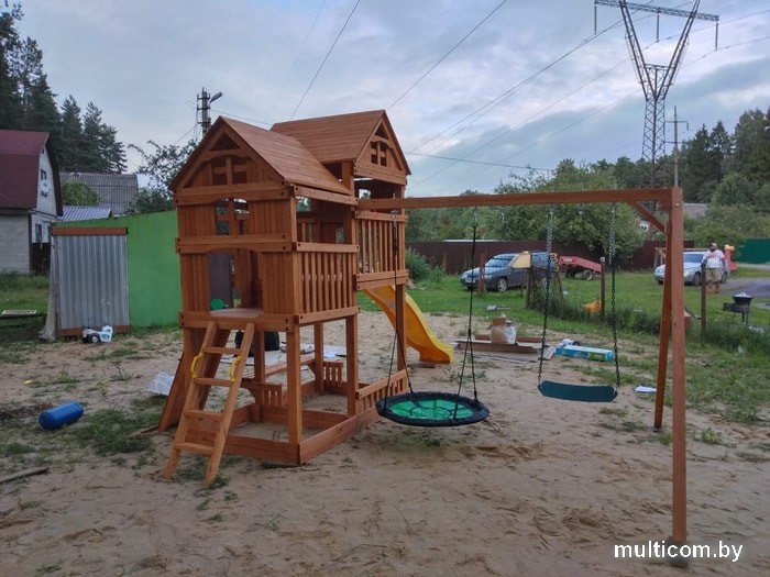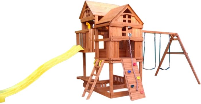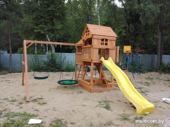 | Информация | Крыша двухуровневого форта изготовлена из дерева для придания дополнительной прочности конструкции, устойчивости площадки и эстетики внешнего вида. Усиленная и удлиненная балка с двумя качелями и трапецией, чтобы играть не тесно и безопасно.Дерево обработано тремя слоями безопасной пропитки на водной основе с применением антисептиков для ещё большей защиты от неблагоприятного воздействия окружающей среды и осадков.Углубленная горка-спуск делает катание с горки абсолютно безопасным.Игровая площадка отлично подходит для организации детского отдыха. Она универсальная и позволяет малышам проводить время так, как им хочется: качаться на качелях, общаться, играть в сюжетные игры, устраивать пикники и спортивные соревнования на свежем воздухе. Игровой комплекс изготовлен из обработанного антисептическими составами качественного дерева, которое не теряет своей прочности и красоты под воздействием влаги и ультрафиолета. Конструкция площадки тщательно продумана с точки зрения детской безопасности.Особенности:Площадка изготавливается из натуральных природных материалов древесного происхождения - массив березы.Материал имеет естественную древесную текстуру, обработан специальными составами для большего срока использования и предохранения от разрушения древесины.Небольшое количество металлических элементов значительно исключает возможность получения ребенком травм.Размещается площадка на грунте (бетонирование не обязательно).Пространство под башней используется как песочницы - это значительно экономит Ваше пространствоКомплектация игрового комплекса:- пластиковая горка желтого цвета длиной 265 см;- пара стандартных качелей на цепях;- скалодром с канатом и пластиковыми упорами для рук и ног;- встроенная песочница;- скамейка для отдыха;- трапеция с ручками;- перископ;- руль;- почтовый ящик. |