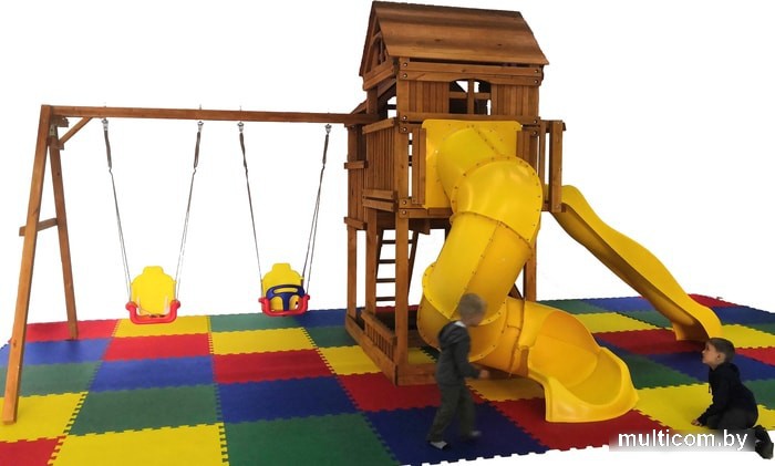 | Информация | Винтовая труба из прочного пластика делает площадку непохожей на все остальные и поможет существенно разнообразить игры детей. Усиленная и удлиненная балка позволяет разместить 2 качели и трапецию так, что детям не будет тесно.Крыша выполнена из дерева для усиления конструкции и эстетичного внешнего вида.Детскую площадку производят из высококачественной сосна из Сибири. Брусья сушат до влажности 12%, что на 30% повышает долговечность и срок эксплуатации детской площадки. Все деревянные поверхности покрывают тремя слоями безопасной антисептической пропитки на водной основе для ещё большей защиты от неблагоприятного воздействия окружающей среды и осадков.Игровая площадка c винтовой трубой отлично подходит для организации детского отдыха. Она универсальная и позволяет малышам проводить время так, как им хочется: качаться на качелях, общаться, играть в сюжетные игры, устраивать пикники и спортивные соревнования на свежем воздухе. Игровой комплекс изготовлен из обработанного антисептическими составами качественного дерева, которое не теряет своей прочности и красоты под воздействием влаги и ультрафиолета. Конструкция площадки тщательно продумана с точки зрения детской безопасности.Особенности:Площадка изготавливается из натуральных природных материалов древесного происхождения - массив березы.Материал имеет естественную древесную текстуру, обработан специальными составами для большего срока использования и предохранения от разрушения древесины.Небольшое количество металлических элементов значительно исключает возможность получения ребенком травм.Размещается площадка на грунте (бетонирование не обязательно).Пространство под башней используется как песочницы - это значительно экономит Ваше пространствоКомплектация игрового комплекса:- винтовая труба;- горка- пара стандартных качелей на цепях;- скалодром с канатом и пластиковыми упорами для рук и ног;- встроенная песочница;- скамейка для отдыха;- трапеция с ручками;- перископ;- руль;- почтовый ящик. |